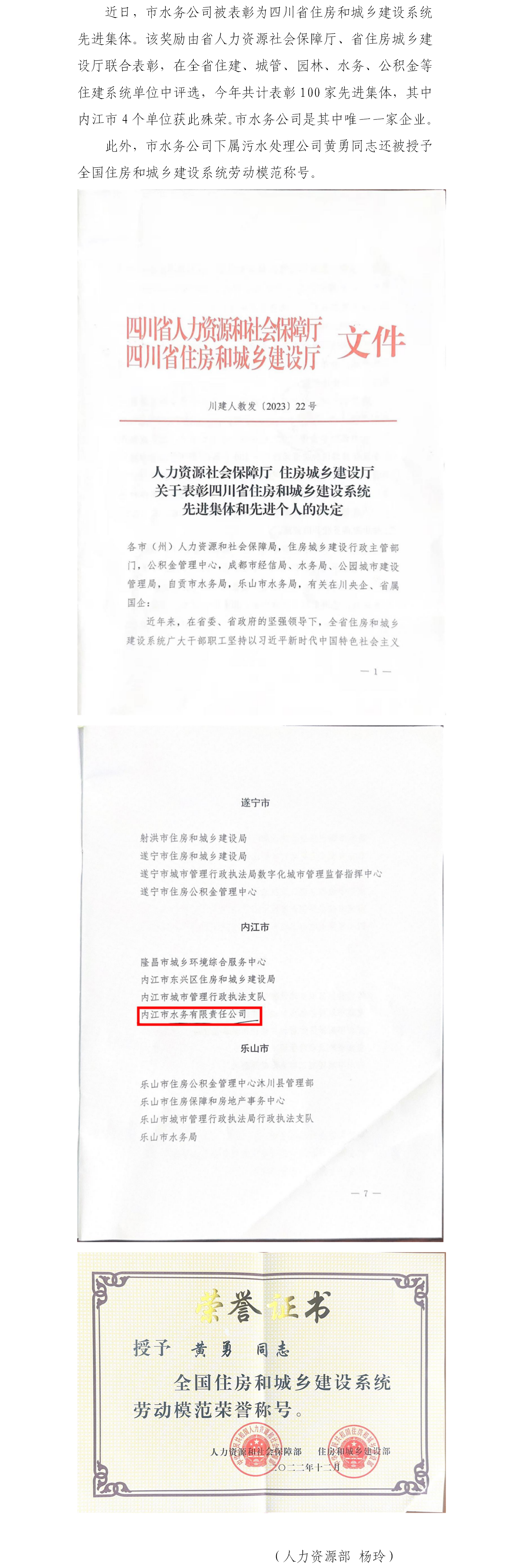 內江唯一一家企業!市水務公司榮膺全省住建系統先進集體