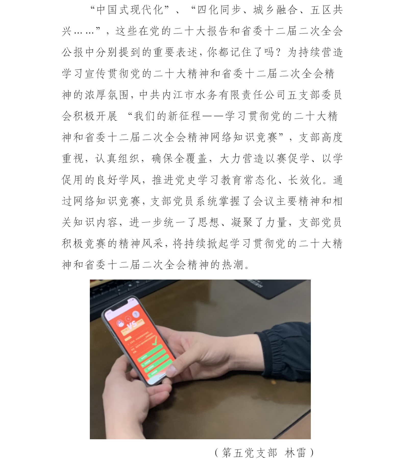 水務公司第五黨支部積極參與“黨的二十大精神及省委十二屆二次全會精神網(wǎng)絡知識競賽”