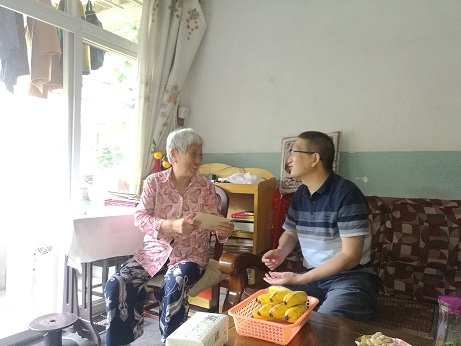 在于淑蘭、黃仁宇、張樹華、明素蘭四位老黨員干部居所,杜科同他們拉家常,關心老同志們身體狀況及生活情況,傾聽他們講述創業故事,叮囑老前輩在炎熱夏季注意防暑降溫,希望他們繼續為公司發展建言獻策,并衷心祝愿他們生活快樂、健康長壽。