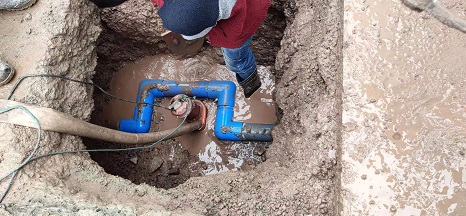 1129日,經開區污水處理廠工作人員在巡視中發現廠區內進出水管道疑似有滲水現象。公司工程管理部接到報修電話后,立即奔赴現場進行勘察,迅速對供水管道設施進行排查,確定是污水處理廠內DN110DN90給水管道漏水,需立即修復。