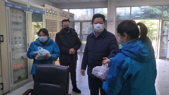 219日上午,市國資委黨委書記、主任黎斌深入二水廠慰問供水一線員工。公司領導吳芝奇、李濤陪同慰問。