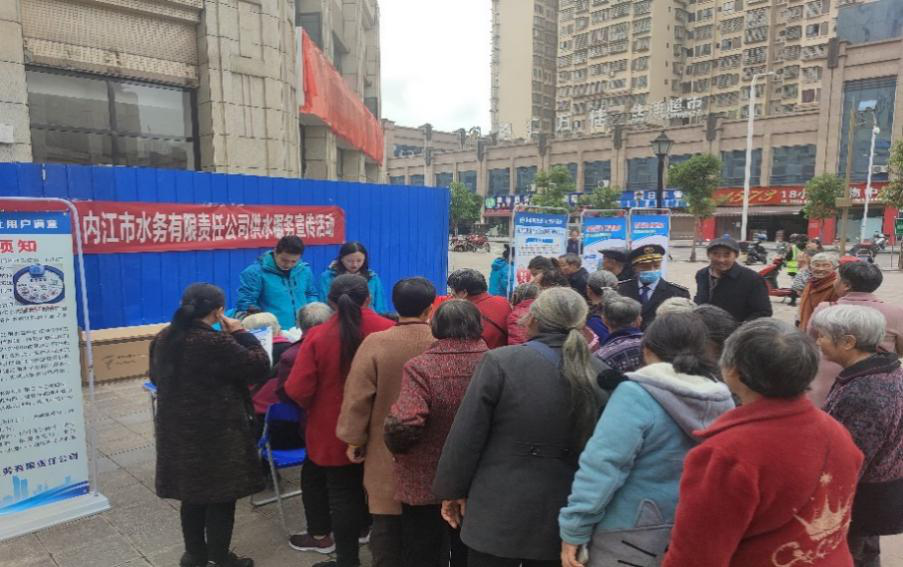 10月27日下午,市水務(wù)公司客戶服務(wù)部、生技部、二次供水服務(wù)公司聯(lián)合開展了宣傳進(jìn)社區(qū)活動。工作人員統(tǒng)一著裝,黨員佩戴黨徽,現(xiàn)場與內(nèi)江市漢祥小區(qū)居民開展“面對面、零距離”交流。講解二次供水、階梯水價(jià)、垃圾處理費(fèi)、水費(fèi)單價(jià)生成等用戶關(guān)心的問題,并提倡大家節(jié)約用水,宣傳水資源的重要性。