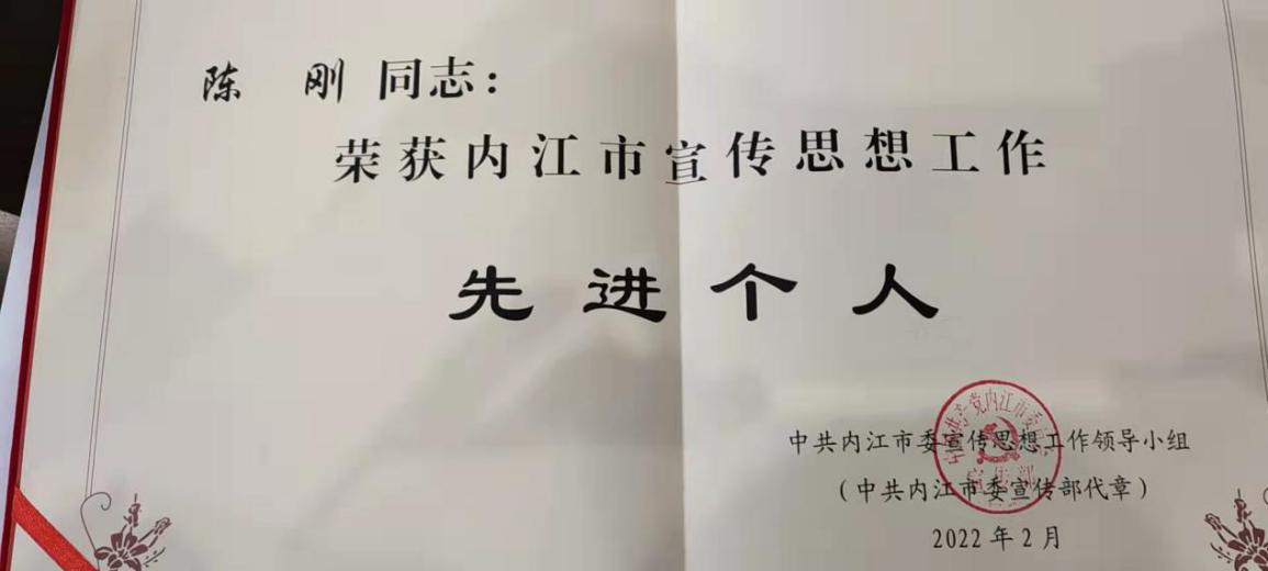 二水廠陳剛同志榮獲內(nèi)江市宣傳思想工作先進個人