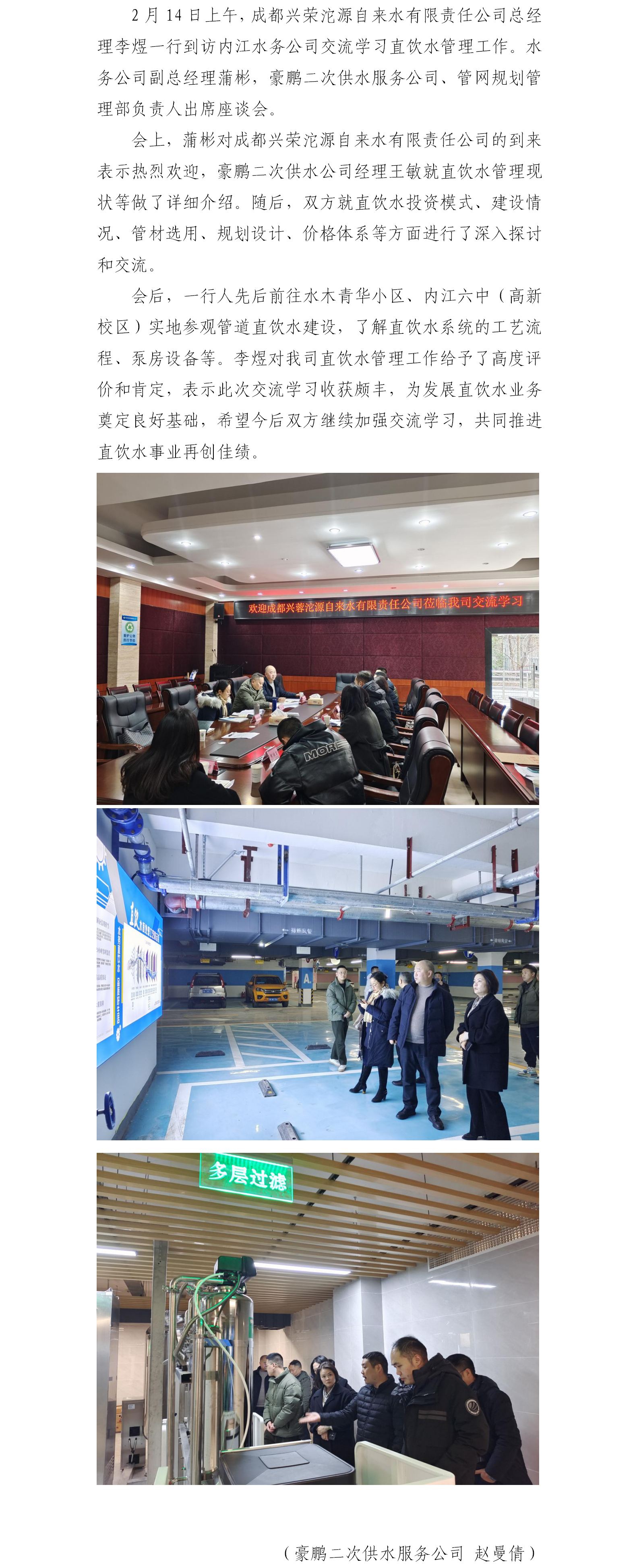 成都興榮沱源自來水有限責(zé)任公司到內(nèi)江水務(wù)交流直飲水管理工作