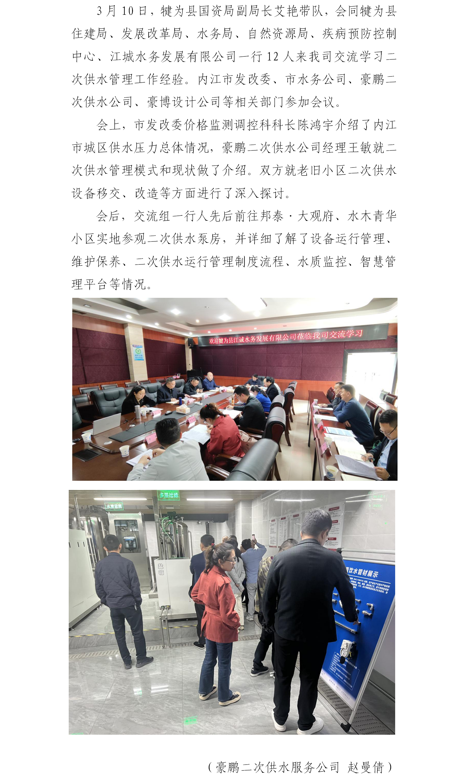 犍為縣江城水務(wù)發(fā)展有限公司到我司開展二次供水管理交流