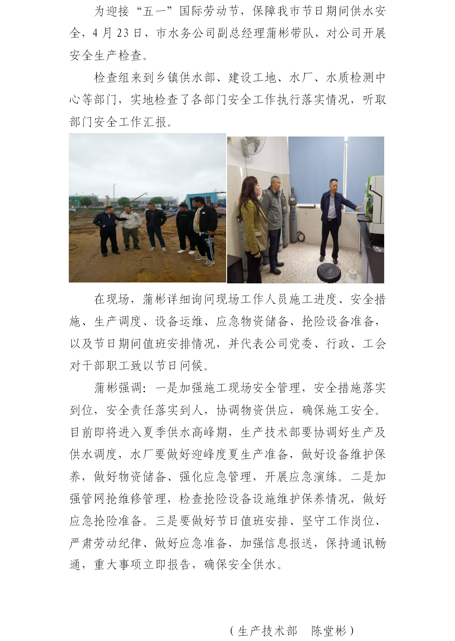 公司開展“五一”節(jié)前安全生產檢查