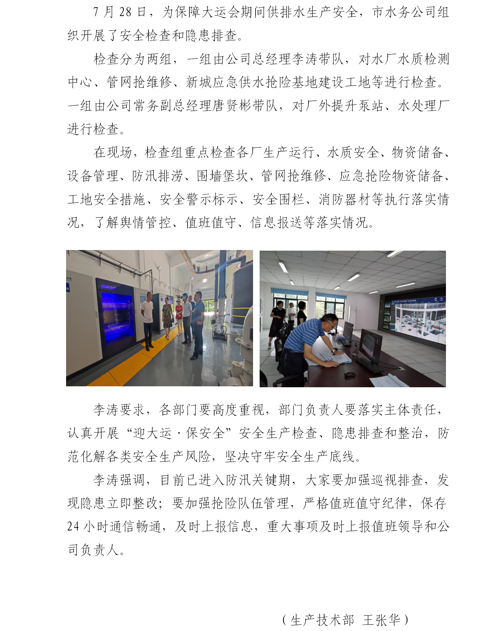 內(nèi)江市水務(wù)有限責(zé)任公司組織開展“迎大運·保安全”安全生產(chǎn)檢查