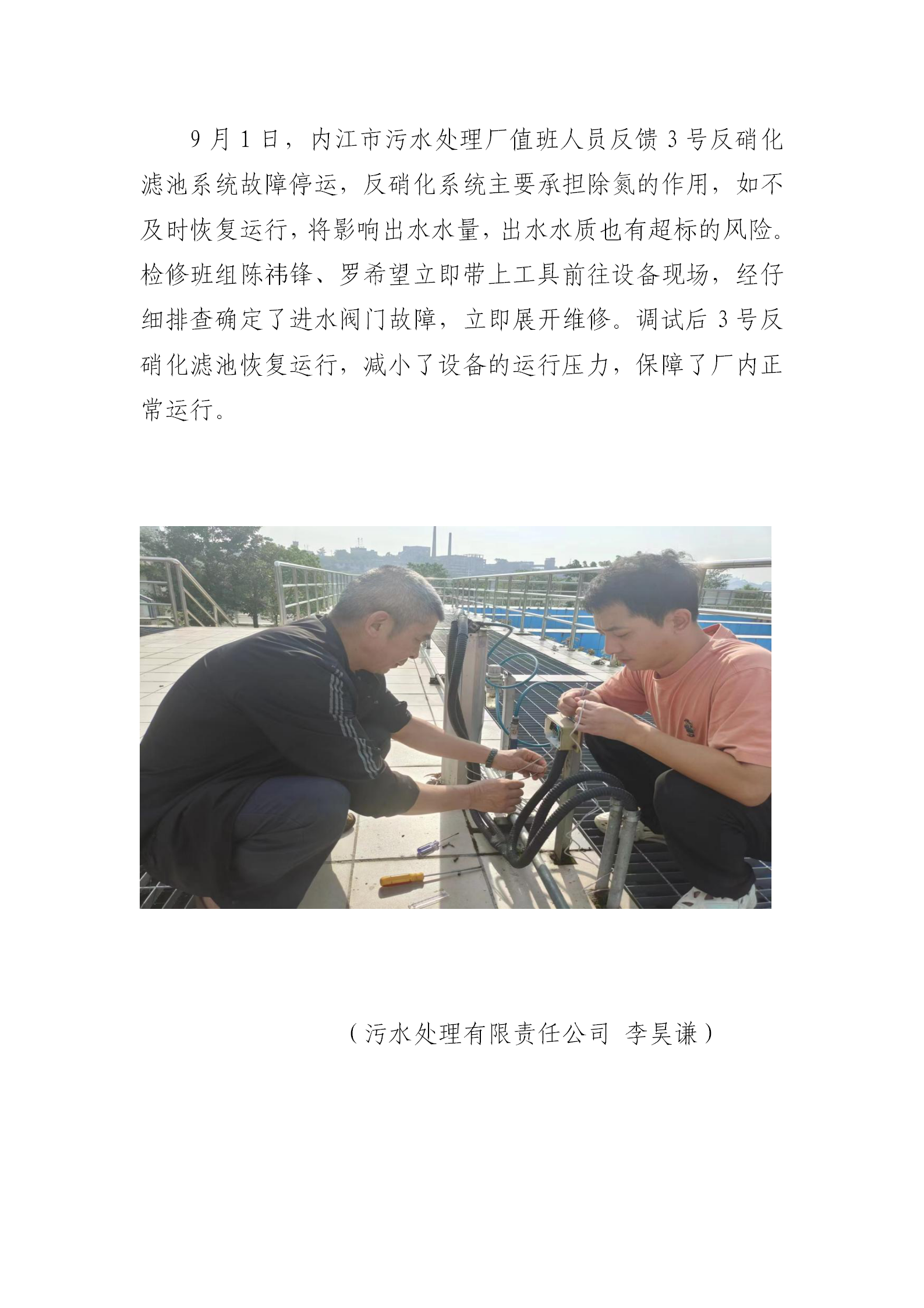 內(nèi)江市污水處理有限責任公司第一污水處理廠維修反硝化濾池故障