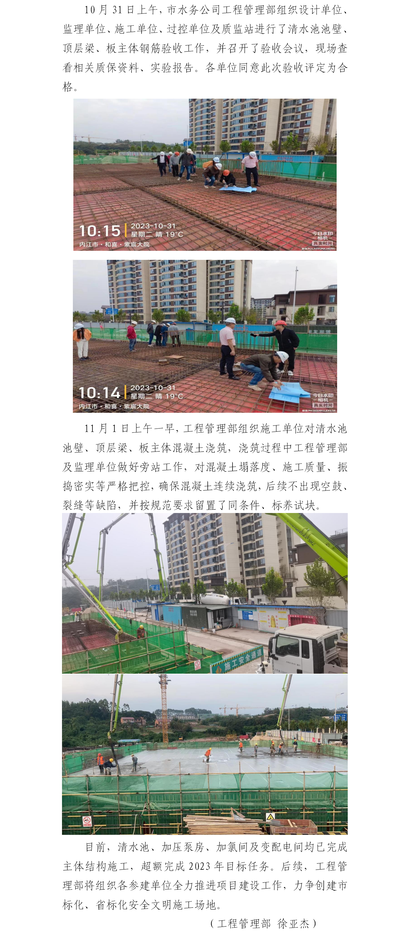 新城片區應急供水搶險基地清水池主體結構工程順利完成
