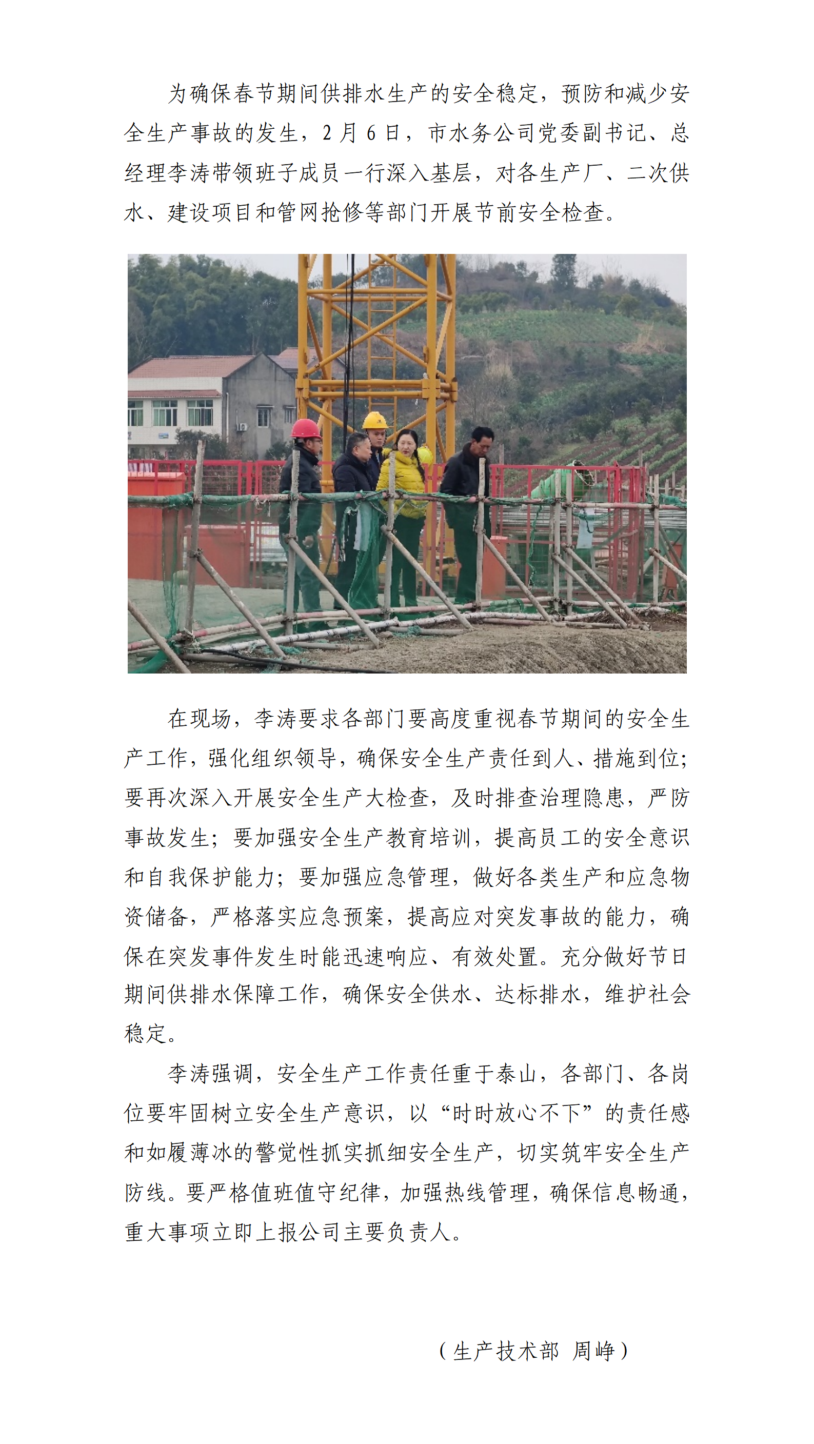 開(kāi)展2024年春節(jié)前安全生產(chǎn)大檢查 確保春節(jié)供排水生產(chǎn)安全
