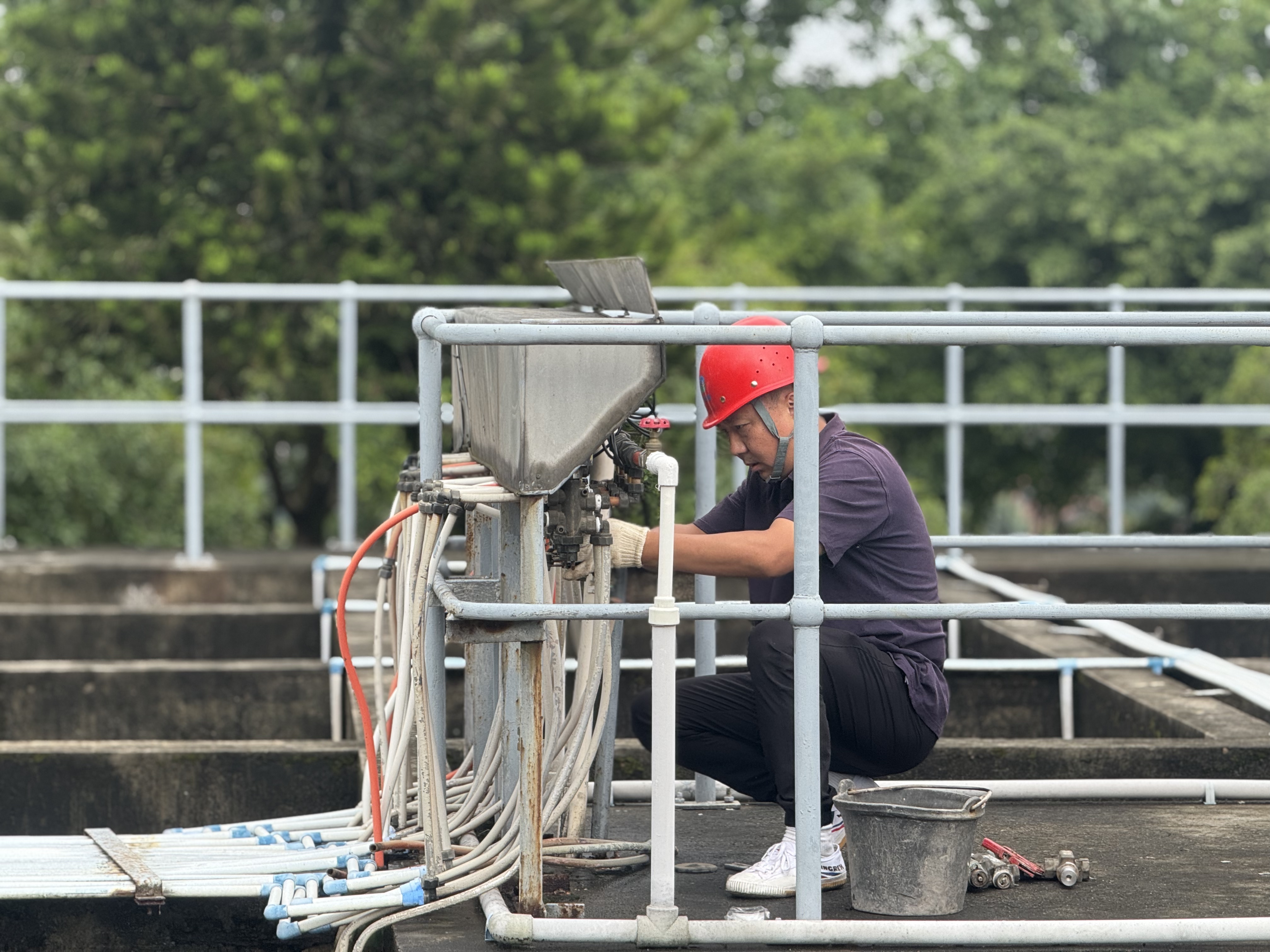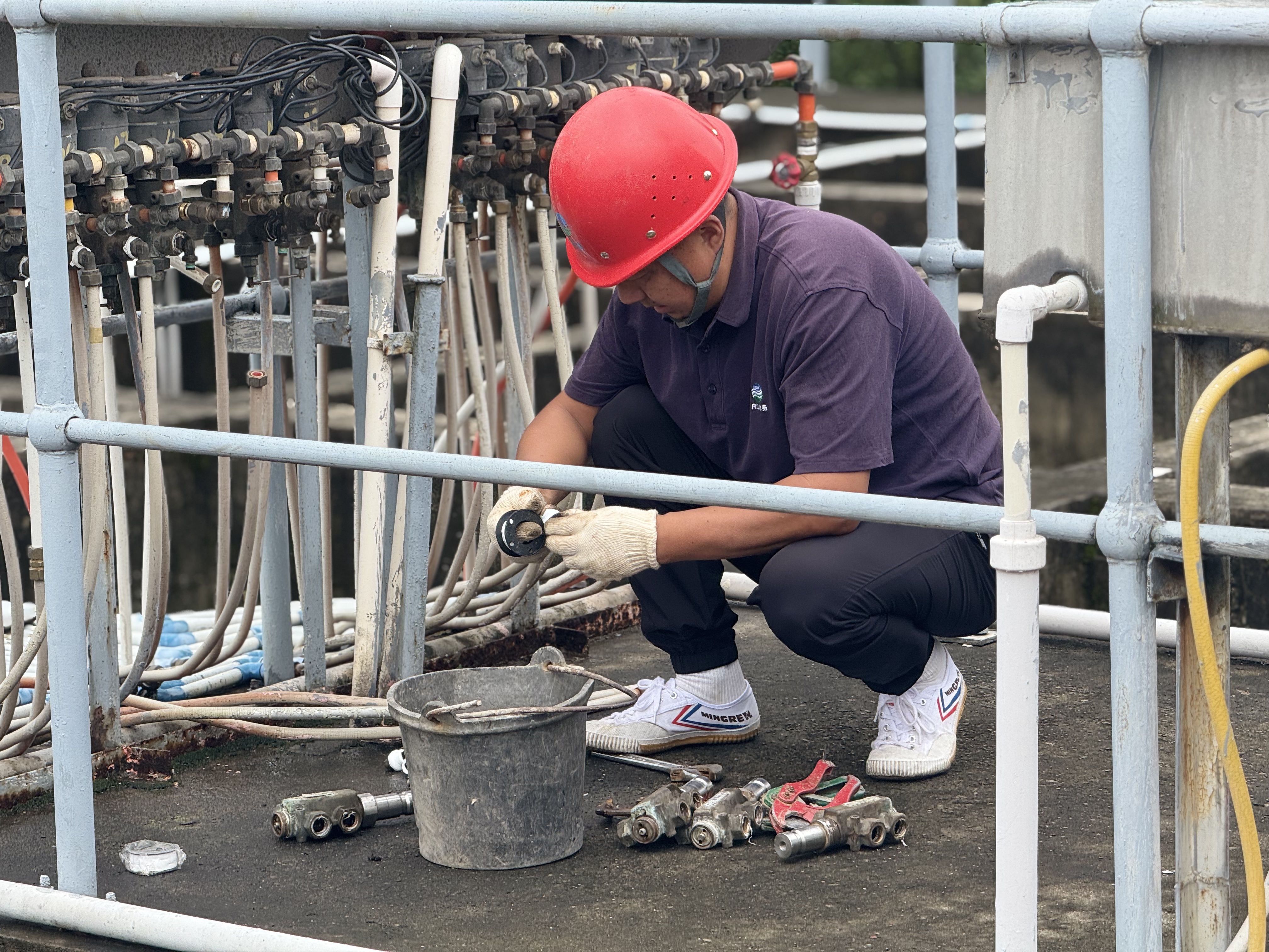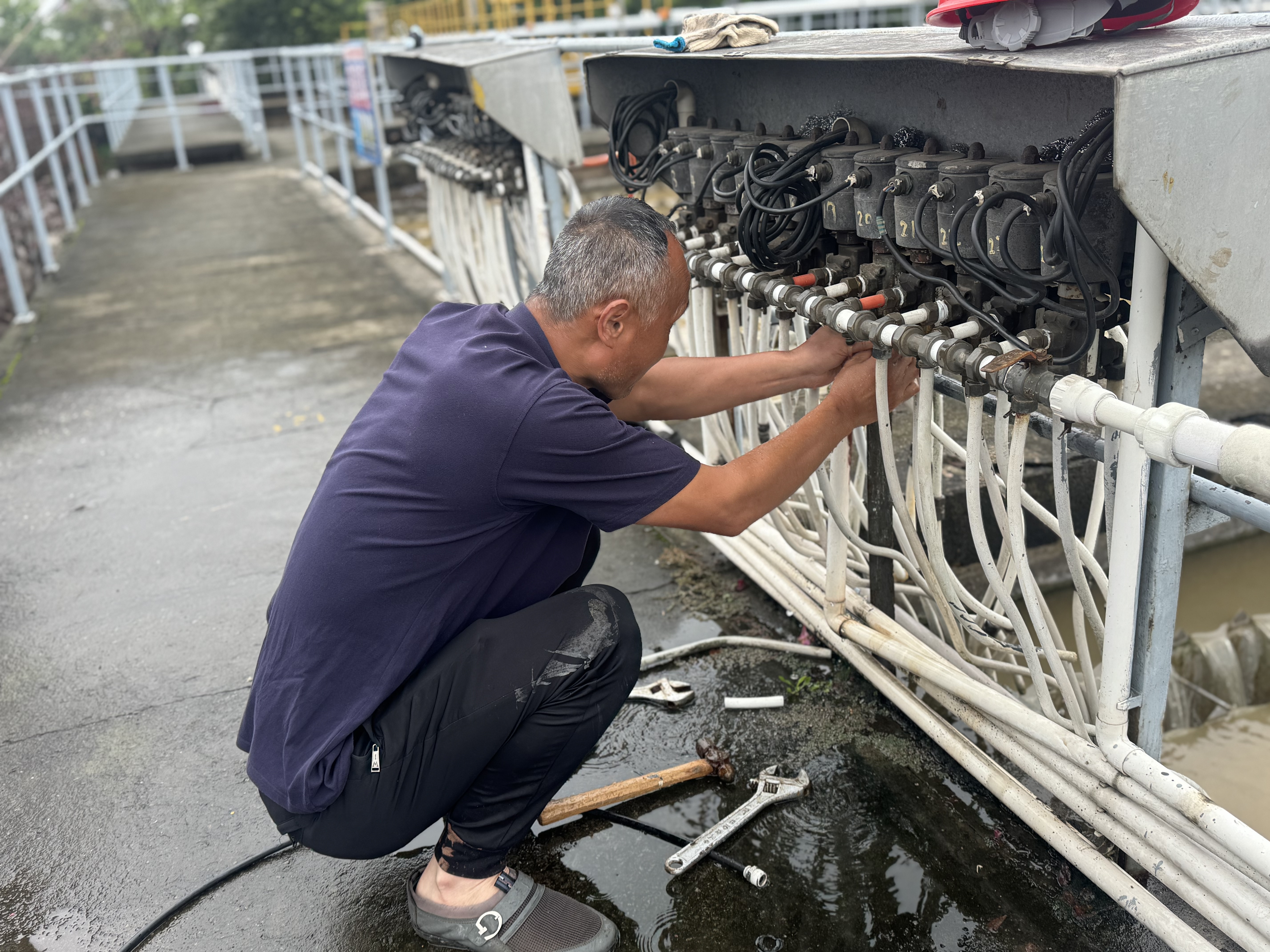 供水安全的責任重于泰山。7月8日清晨,剛剛完成三水廠二氧化氯投加設備維修的供水分公司維修組,聞令火速轉戰二水廠,投入到緊張的“戰斗”中:迅速展開拆解、診斷、更換、調試工作。經驗豐富的維修師傅們動作嫻熟而精準,他們以專業的技術和頑強的作風,與時間賽跑,與故障較量,高效疏通了排泥系統的“堵點”,確保流進千家萬戶的每一滴自來水,都經得起最嚴格的檢驗。