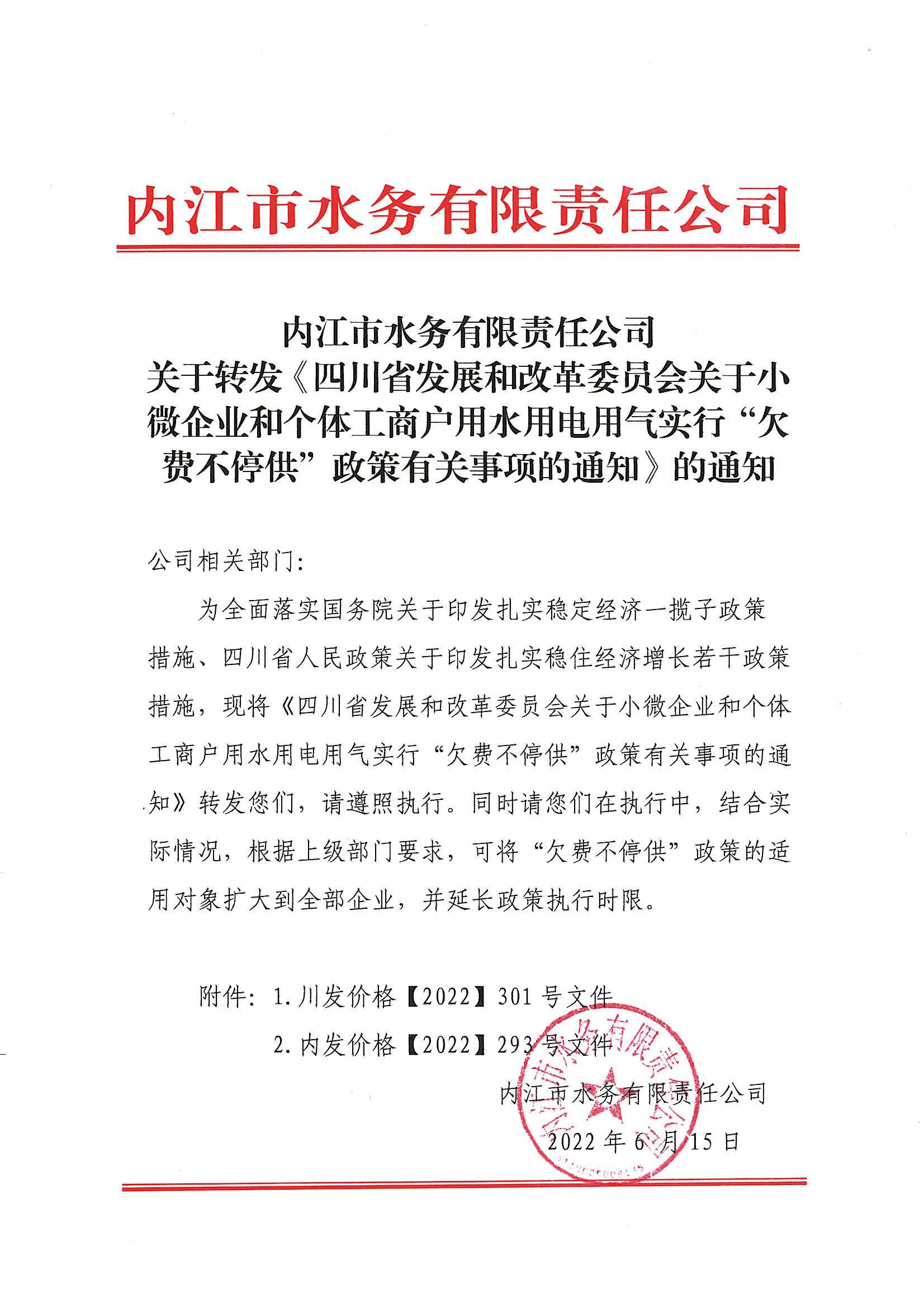 關于小微企業和個體工商戶用水用電用氣實行“欠費不停供”政策有關事項的通知